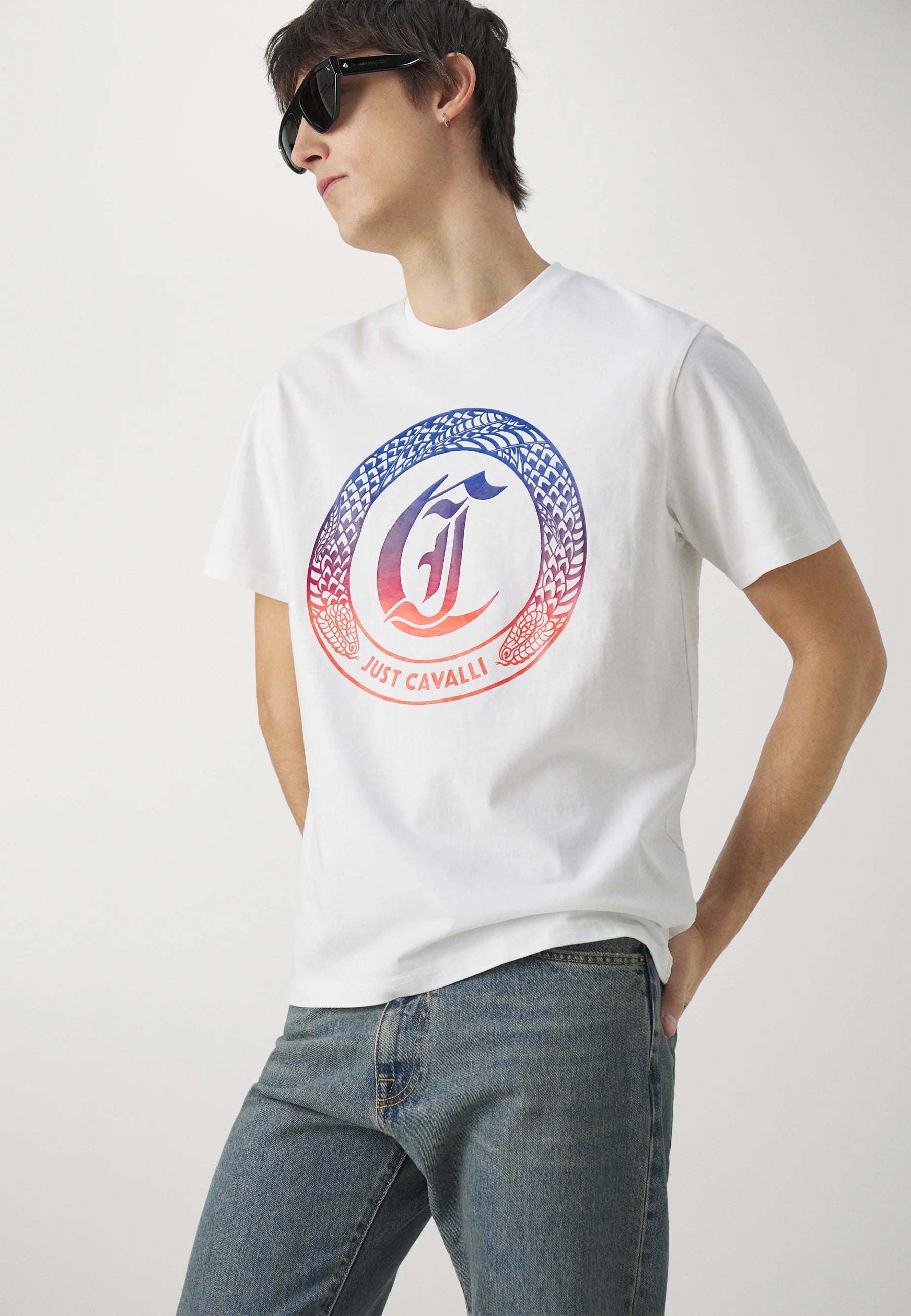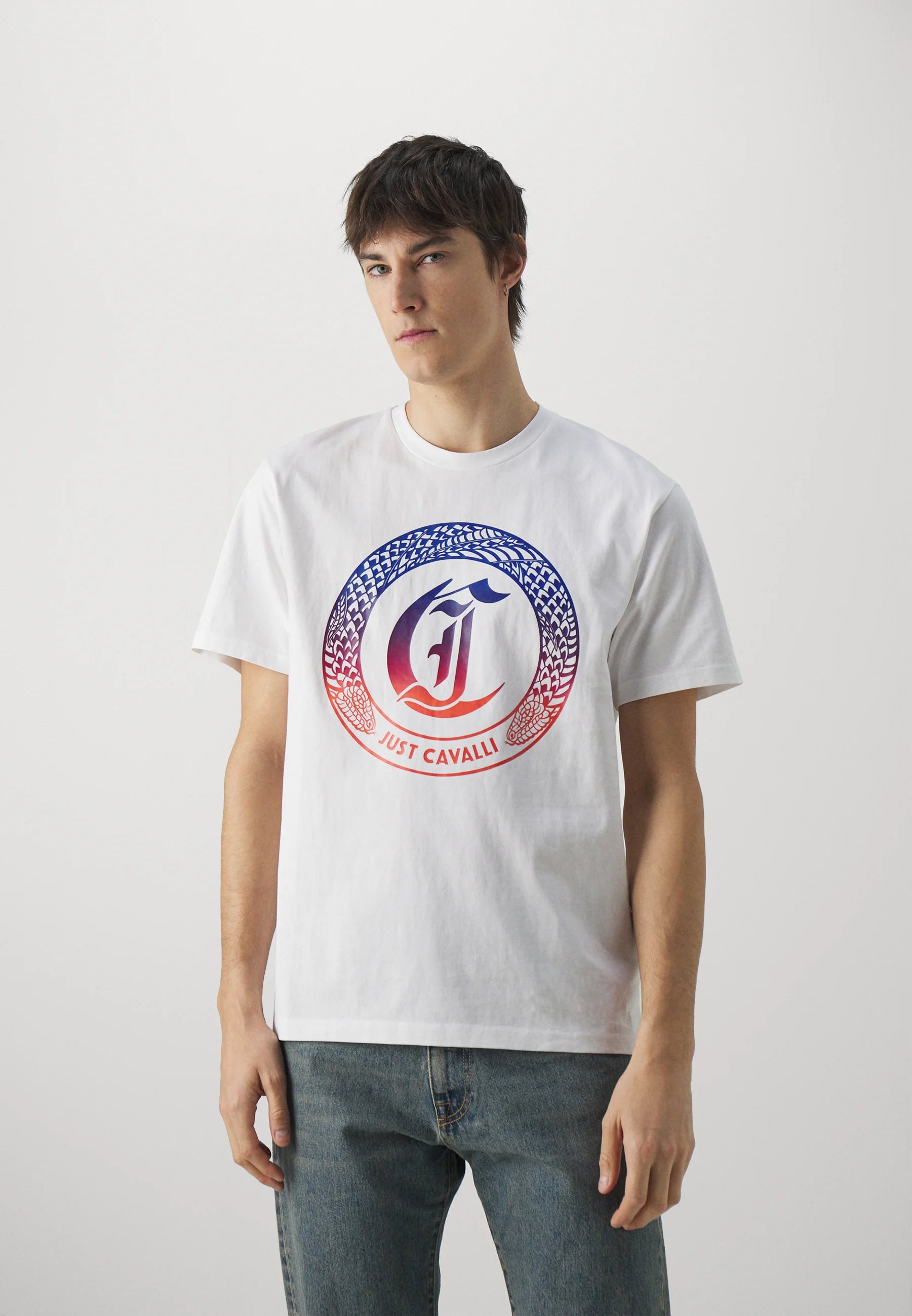T-SHIRT JUST CAVALLI ROUND SNAKE BIANCA