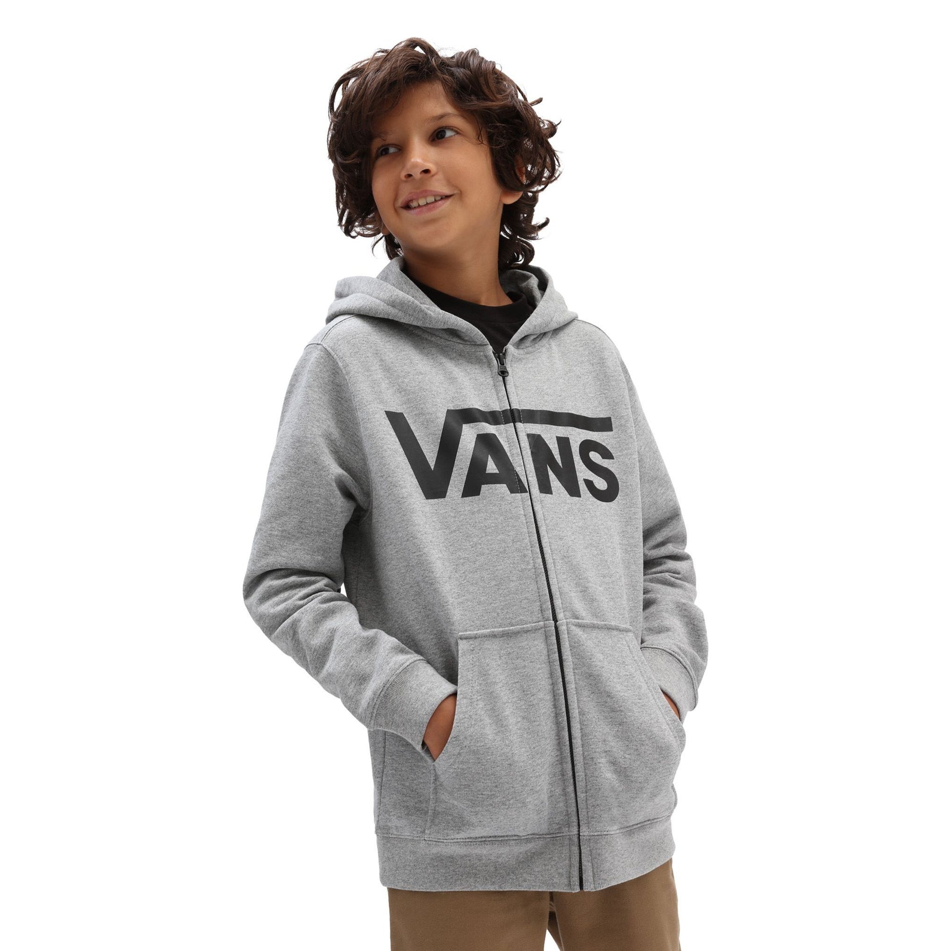 La felpa con cappuccio e zip Vans Classic da bambino è realizzata in 100% pile di cotone. Presenta una zip a tutta lunghezza, tasche frontali e il classico logo Vans sul davanti.