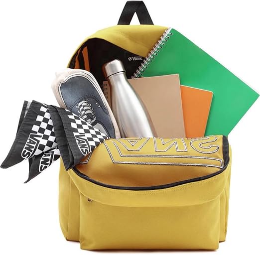 Lo zaino Vans Old Skool Drop V è realizzato in tessuto di 100% poliestere riciclato. Presenta un ampio scomparto principale, tasca frontale con zip e divisorio per un rapido accesso e tasca portabottiglie. È dotato di tasca per laptop adatta alla maggior parte dei laptop da 38 cm e logo Vans sul davanti.
