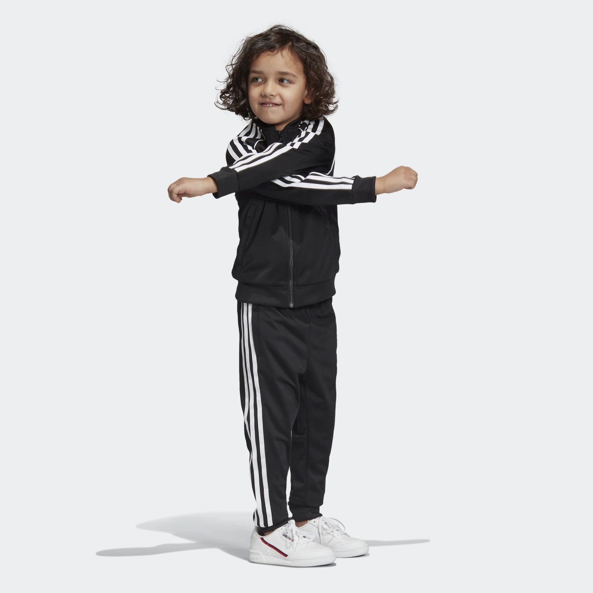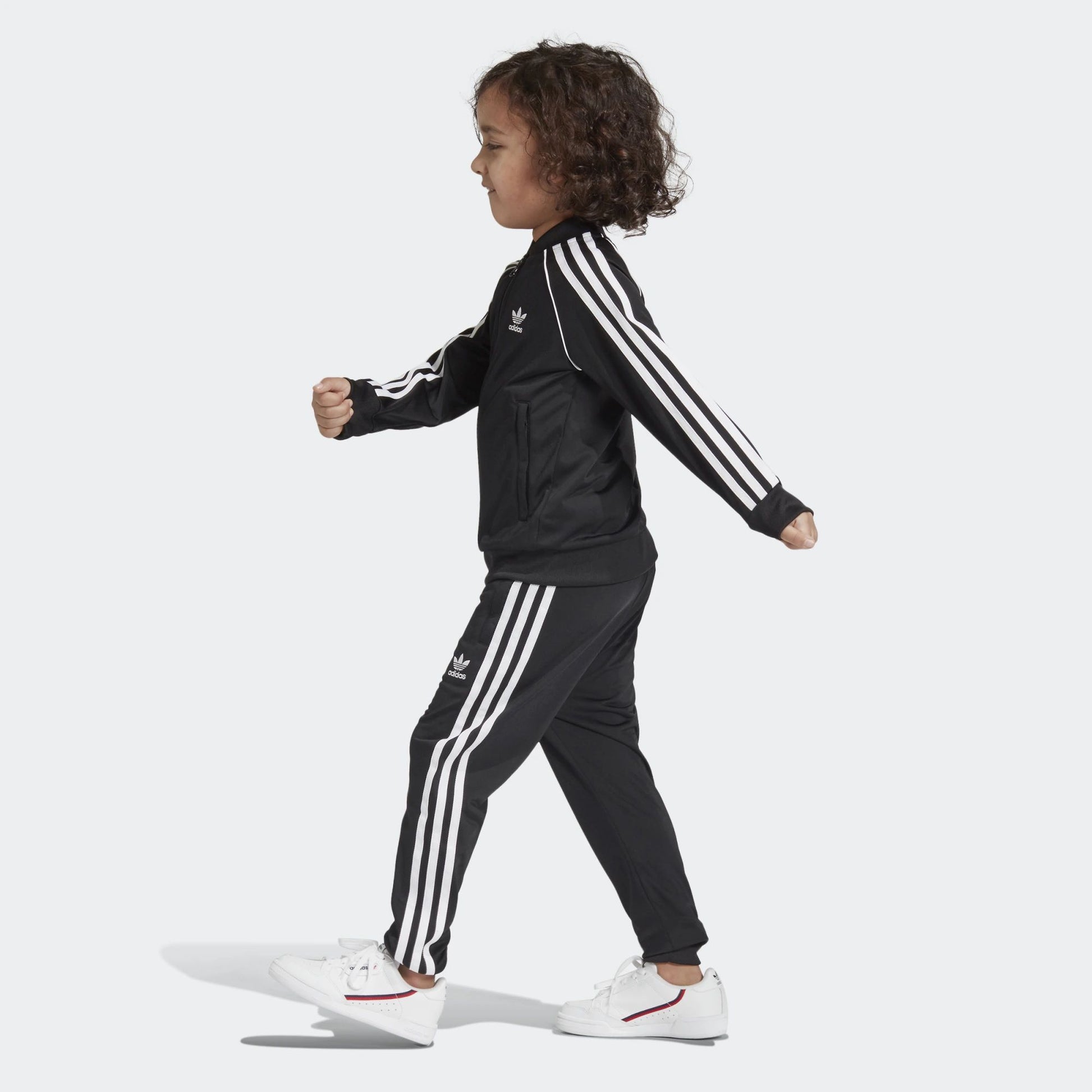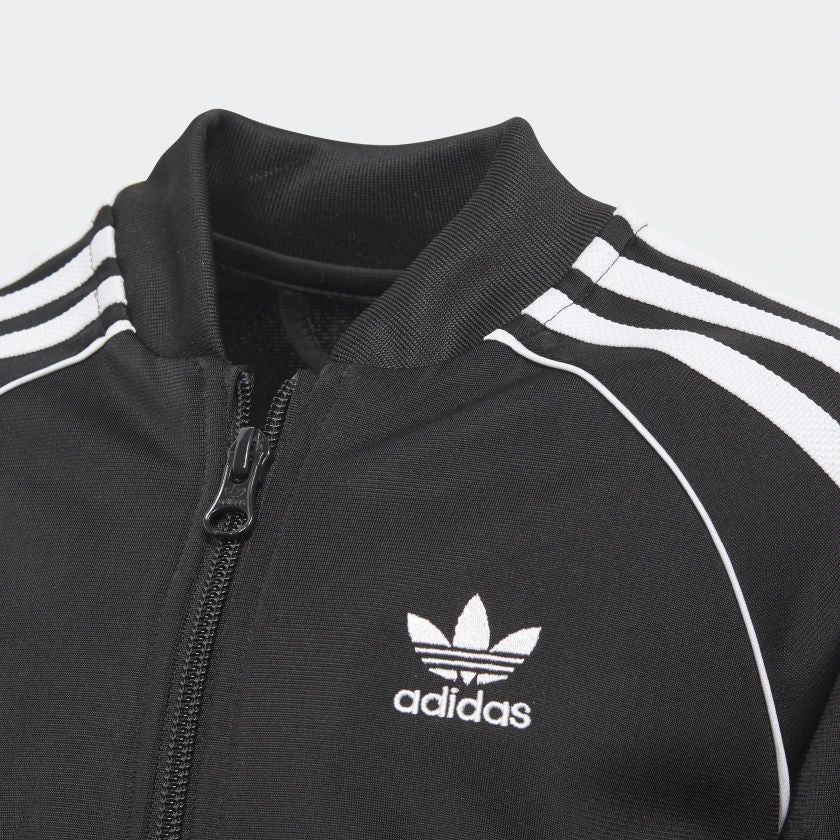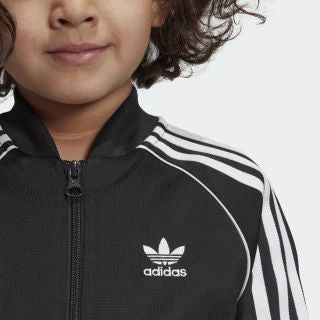 Un intramontabile look sportivo creato appositamente per i bambini. Questa tuta con 3 Strisce sulle maniche e sulle gambe offre l'autentico stile adidas Originals. Il tricot di poliestere riciclato, morbido e liscio, dona un tocco moderno al design.